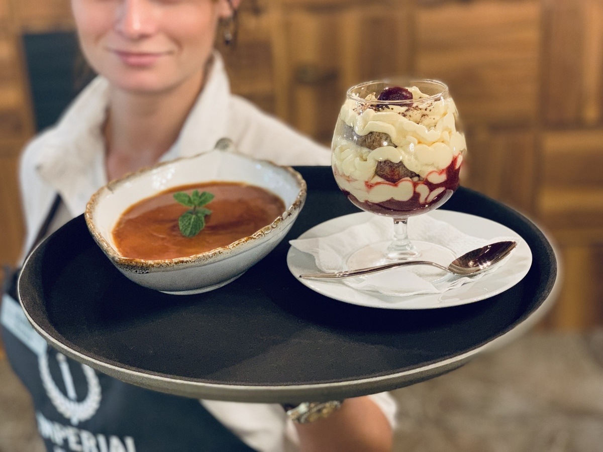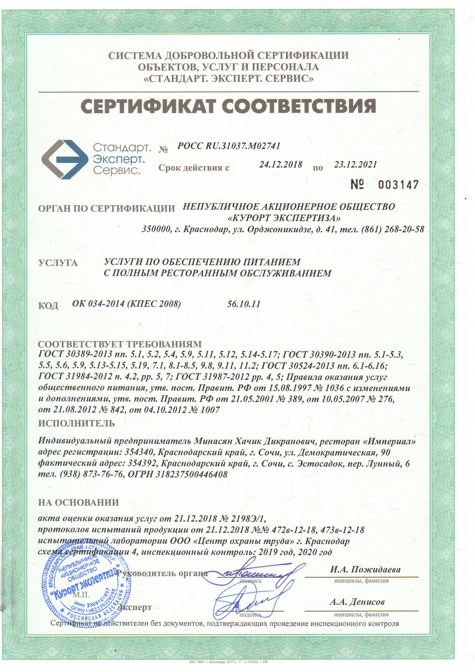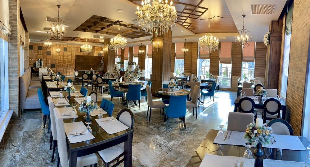 Ресторан «Империал» – заведение, способное удовлетворить самые высокие требования. Будь то ужин в кругу друзей, романтический вечер для двоих, или деловая встреча, ресторан «Империал» - лучший выбор, для тех, кто хочет не просто вкусно поесть, но и насладиться изяществом интерьера, изысканностью европейской кухни, великолепным видом на горы и атмосферой высококачественного сервиса. Также мы можем организовать для Вас банкет или корпоративный вечер.